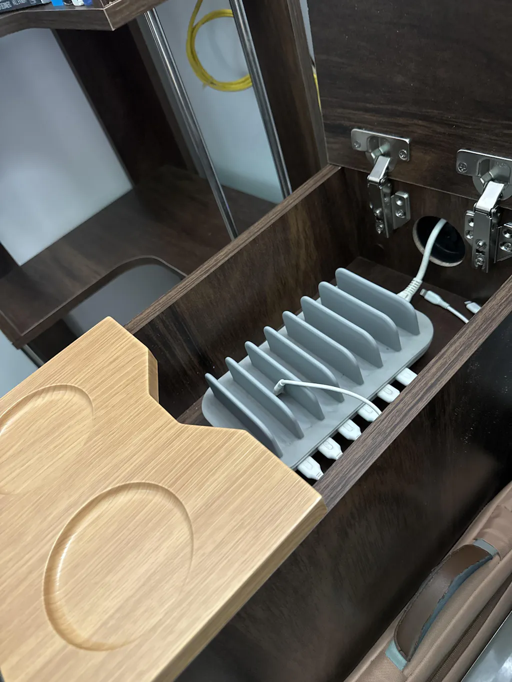 Designed to bring convenience to your lifestyle, this side table offers effortless access to tea & coffee by providing two slots for cups. The concealed wire manager at the back grants access to charge mobiles, laptops and communication devices next to your sofa. It also includes two closed storages on the top and front plus a magazine rack on one side, making this side table a multi-functional and one of the most efficient décor item.
